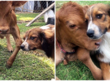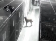 Maggie, an Australian shepherd mix who stayed at the Barkers Pet Motel in Alberta, Canada while her owners were away, slipped out of her kennel to console two