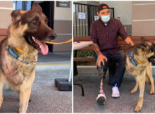 Despite her damaged leg, a Greyhound spotted wandering the streets led a veterinarian two kilometers to her babies.Lianne Powell, a psychologist, was the one who noticed the puppy