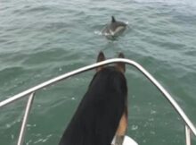 Is there anything more irritating than being teased? It’s also not pleasant for dogs. When a couple of dolphins approached Maverick the German Shepherd as he was sunbathing