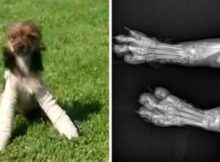 Chewie the Yorkie was discarded like trash at a park in Santa Ana, Orange County, California. Despite the fact that both of his front legs were completely broken,