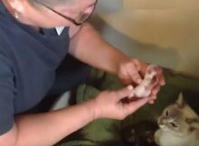 A Siamese cat took up the role of carer and guardian when two Chihuahua-mix puppies were born prematurely and rejected by their natal mother. Nessy had just given