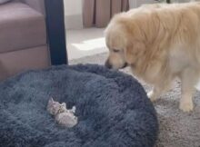 Bailey, a gorgeous golden retriever, just wants to relax on his nice fluffy bed, but he can’t because there’s an intruder! It’s time for Bailey to take a