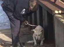 Mladenovac, Serbia’s Dog Rescue Shelter received a call about a dog lying in a drainage pipe by the side of the road. Rescuers were concerned about the dog’s